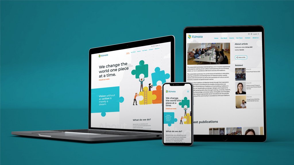 Our collaboration with EUnoia consisted in developing their web page and also designing and branding a presentation logo with their name. We decided to go with a puzzle as something that represents their moto “we change the world one piece at a time”.